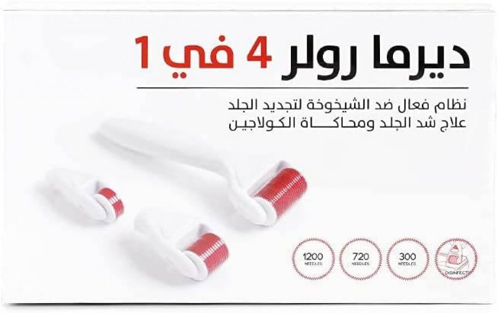 استمتعي ببشرة شابة وصحية مع مجموعة ديرما رولر 4 في 1، التي تقدم لك حلولًا فعّالة للعناية بالبشرة والجسم والشعر. تحتوي هذه المجموعة على 3 أحجام مختلفة من الديرما رولر لتناسب احتياجاتك الخاصة سواء للوجه، الجسم، أو العين.