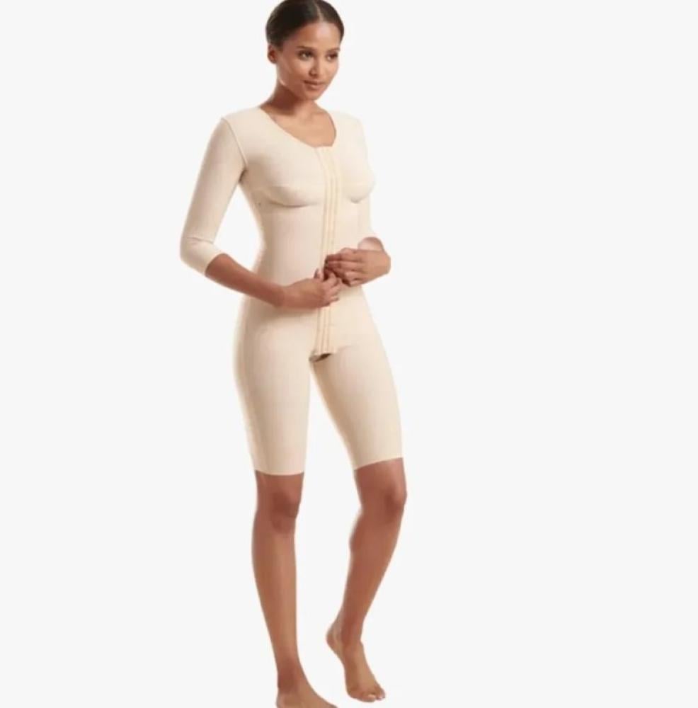 استعيدي رشاقتك بأمان وراحة مع مشد مارينا FTRS-SM الطبي، المصمم لتغطية الجسم من الذراعين حتى فوق الركبة، ليمنحكِ دعماً مثالياً بعد عمليات التجميل مثل شفط الدهون أو شد الجسم.